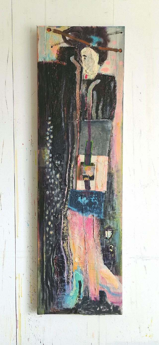 Acryl, Nessel, Flicken und Papier auf Leinen-Keilrahmen, 2024