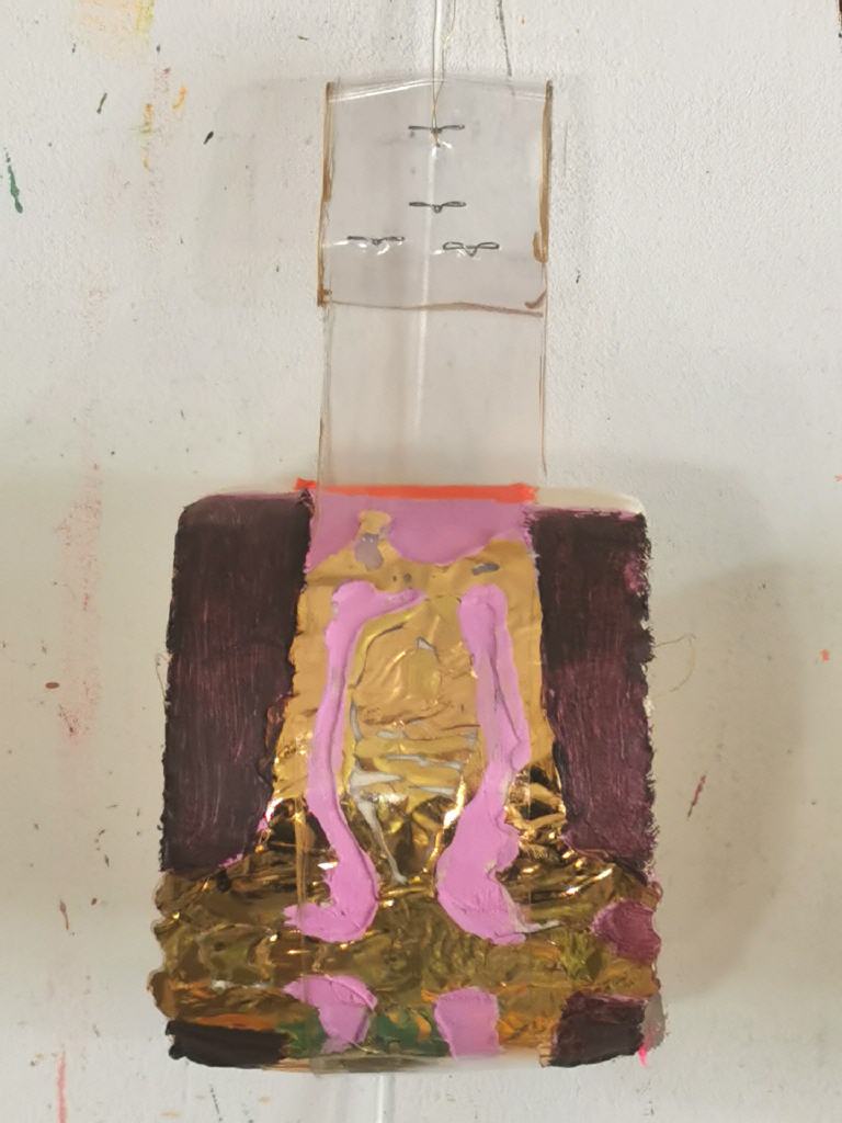 Papiertüte, Acryl und Foliengold in Folienverpackung, 2019